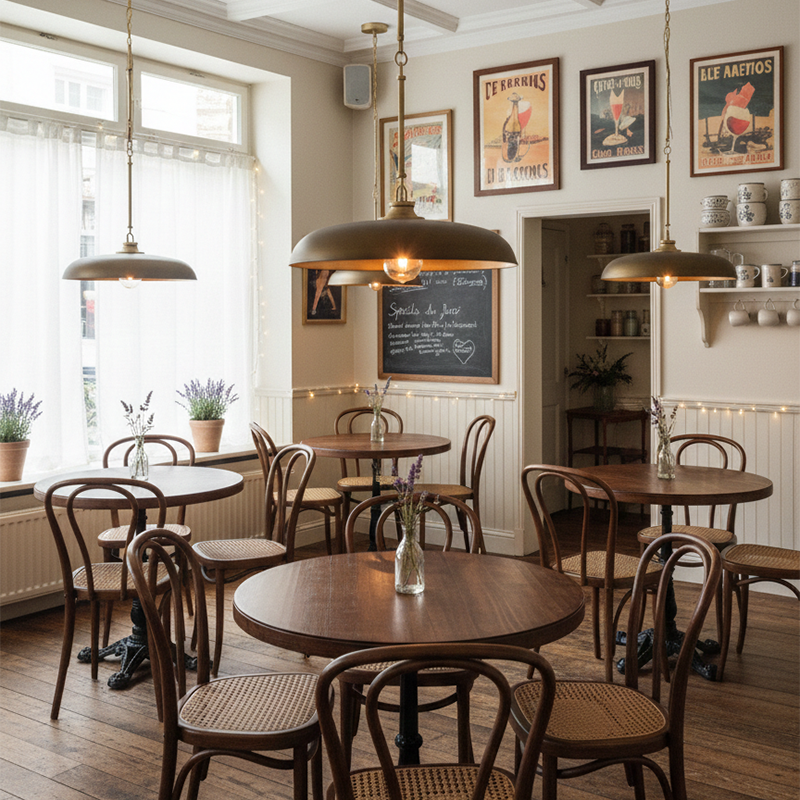 A sophisticated, transitional accent piece, Sadie features a large yet shallow, saucer-style shade with contrasting interiors. Classic two-tone finishes and decorative chain-linked stems enhance bright yet inviting illumination. The special Vintage Denim finish, Antique Verdigris finish along with Heritage Bronze finish, are new luxury finishes in 2026 for the Sadie collection.