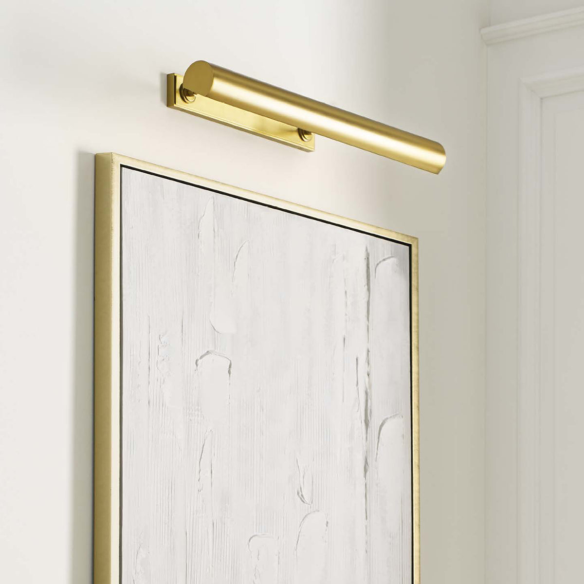 Designed by Chapman & Myers to be highly versatile in their application, at home in any interior. Classic half round pharmacy shades are mounted to a cylindrical metal stem with stepped detailing. The picture lights have architecturally inspired medallions where the arms mount to the rectangular backplate.